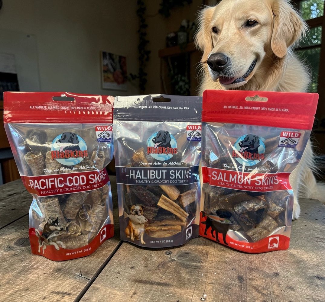 Made with Alaska Salmon, Halibut, & Cod, AlaSkins are packed full of Omega 3s and Vitamins